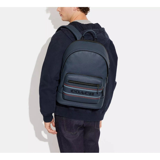 Coach West Backpack With Coach Stripe Gunmetal Denim Multi